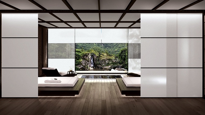 Examples of the implementation of Wood & Washi Rollo in interior projects.